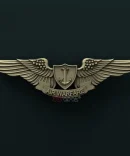 Badge Description: The Aviation Air Warfare Specialist Badge is a gold badge that consists of an eagle in front of a shield. In the eagle’s claws are three arrows. Above the eagle is a laurel wreath and a five-pointed star. The words “Aviation” and “Air Warfare Specialist” are written on the scroll at the bottom of the badge.